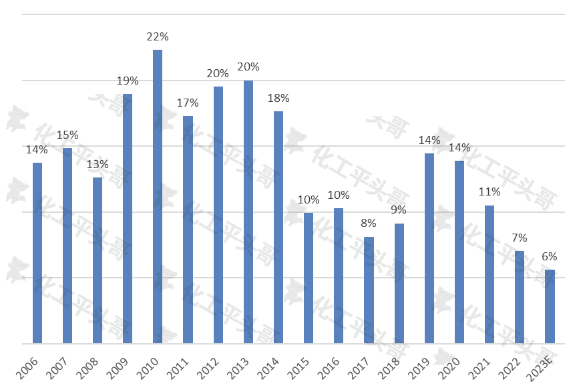 Es ist erwähnenswert, dass die Wachstumsrate des Verbrauchs von Polyetherpolyolen im Wesentlichen mit der Wachstumsrate der chinesischen Wirtschaft übereinstimmt. Das industrielle Wachstum beträgt weniger als 6 % und ist damit deutlich niedriger als die Wachstumsrate des Angebots an Epoxidpropan. Dies bedeutet, dass das schnelle Wachstum auf der Angebotsseite das Angebots- und Nachfrageumfeld auf dem Epoxidpropanmarkt weiter verschlechtern wird, während die Wachstumsrate auf der Verbraucherseite relativ langsam ist. Tatsächlich könnte 2023 bereits das erste Jahr eines Überangebots in der chinesischen Epoxidpropanindustrie sein, und die Wahrscheinlichkeit eines solchen Überangebots bleibt langfristig hoch.